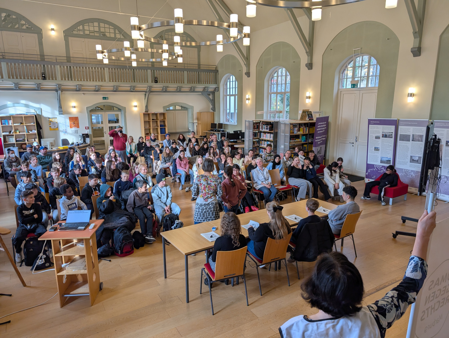 für die Schülerinnen und Schüler in der Mediathek der Schule hielt.