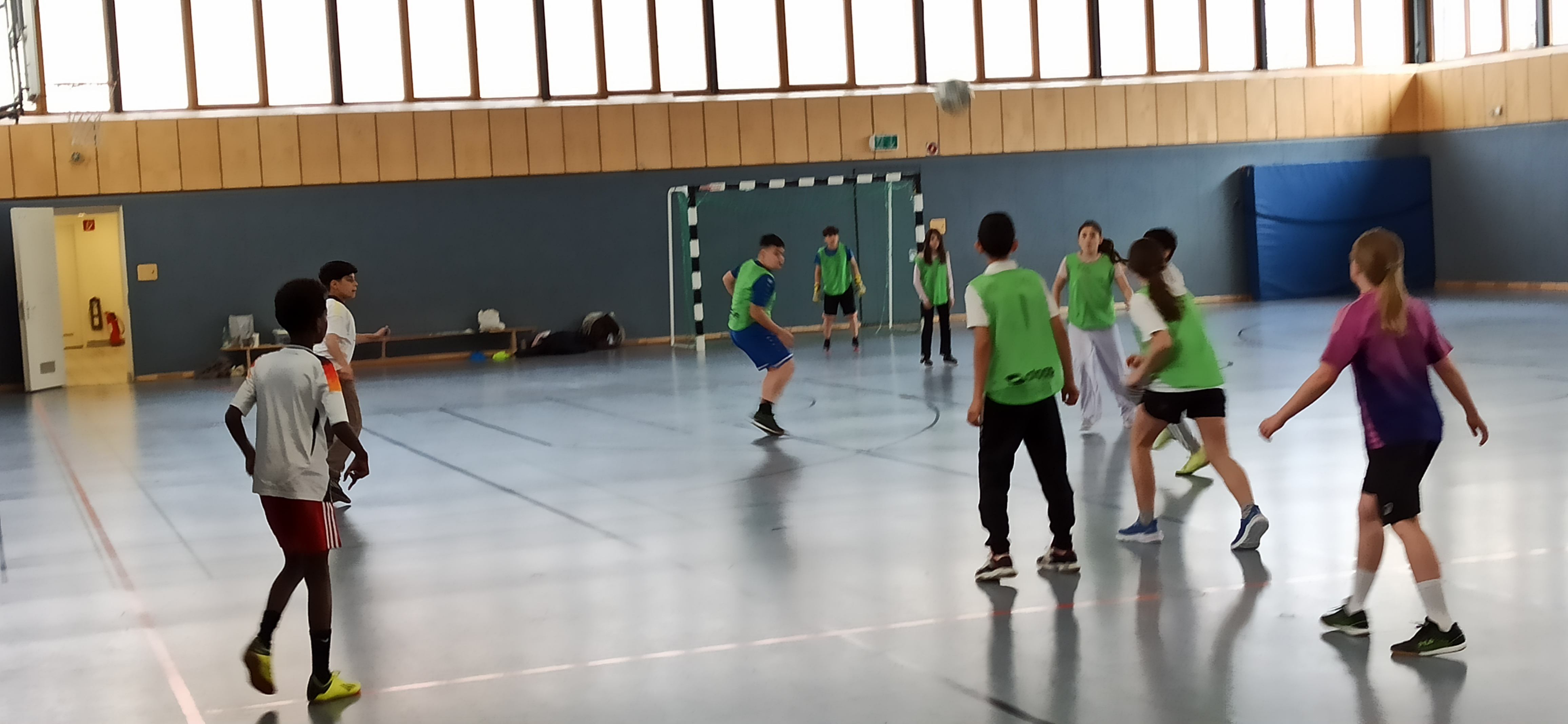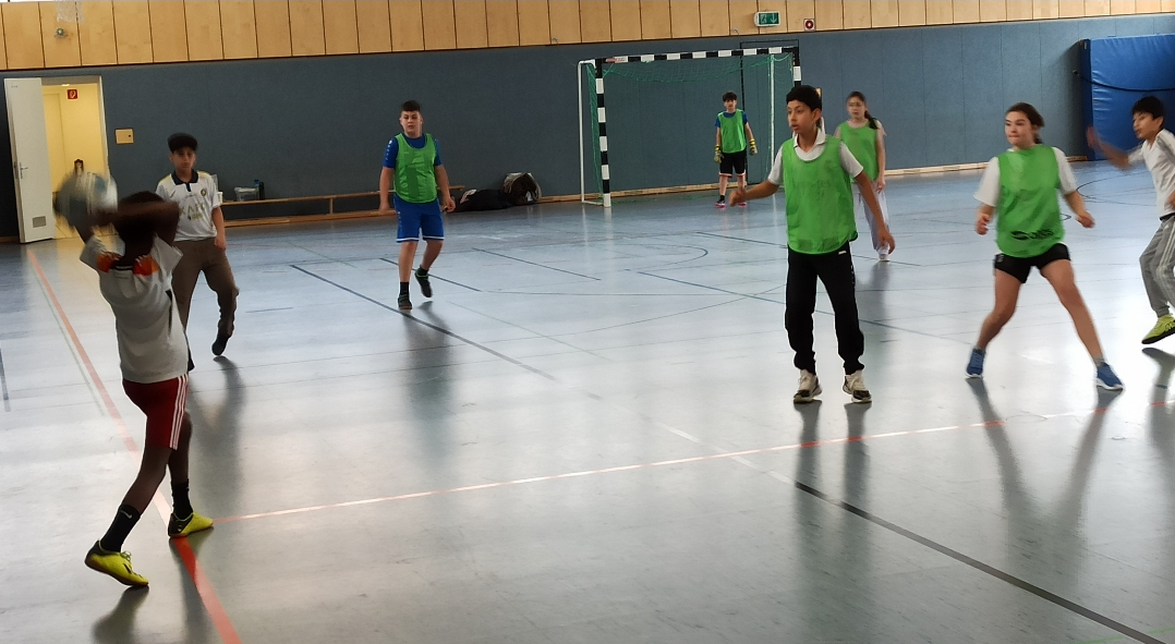 Fussballturnier JG5 001In der letzten Woche vor den Osterferien gab es noch ein Fußball-Turnier unserer 5.Klassen. Zwei Stunden Wettkampf-Spaß für alle - wer gerade nicht spielte, feuerte die eigene Klasse an. Die drei Klassen spielten jeweils 2x8 Minuten gegeneinander. Alle Kinder aus jeweils einer Klasse sollten pro Spiel mindestens einmal auf dem Spielfeld stehen. Eine Vorgabe war zusätzlich, dass immer vier Jungs und vier Mädchen im Einsatz sein mussten. Gecoacht wurden die Klassen von ihren Klassenleitungen, Herr Gawlina, Frau Goldberg und Herrn Schiebl. Die Spiele waren insgesamt ziemlich ausgeglichen, jede Klasse hätte an diesem Vormittag den ersten Platz verdient gehabt. Gewonnen wurde jeweils nur mit einem Tor Vorsprung. Doch am Ende hatte unsere Sportklasse (5bF) die Nase vorn. Sie gingen als stolze Sieger aus der Halle in der Frankfurter Straße. Auffällig war die Fairness, mit der sich die Klassen in dem Wettkampf begegnet sind. Organisiert wurde das Turnier von unserem Fußball-Spezialisten Herrn Gawlina.