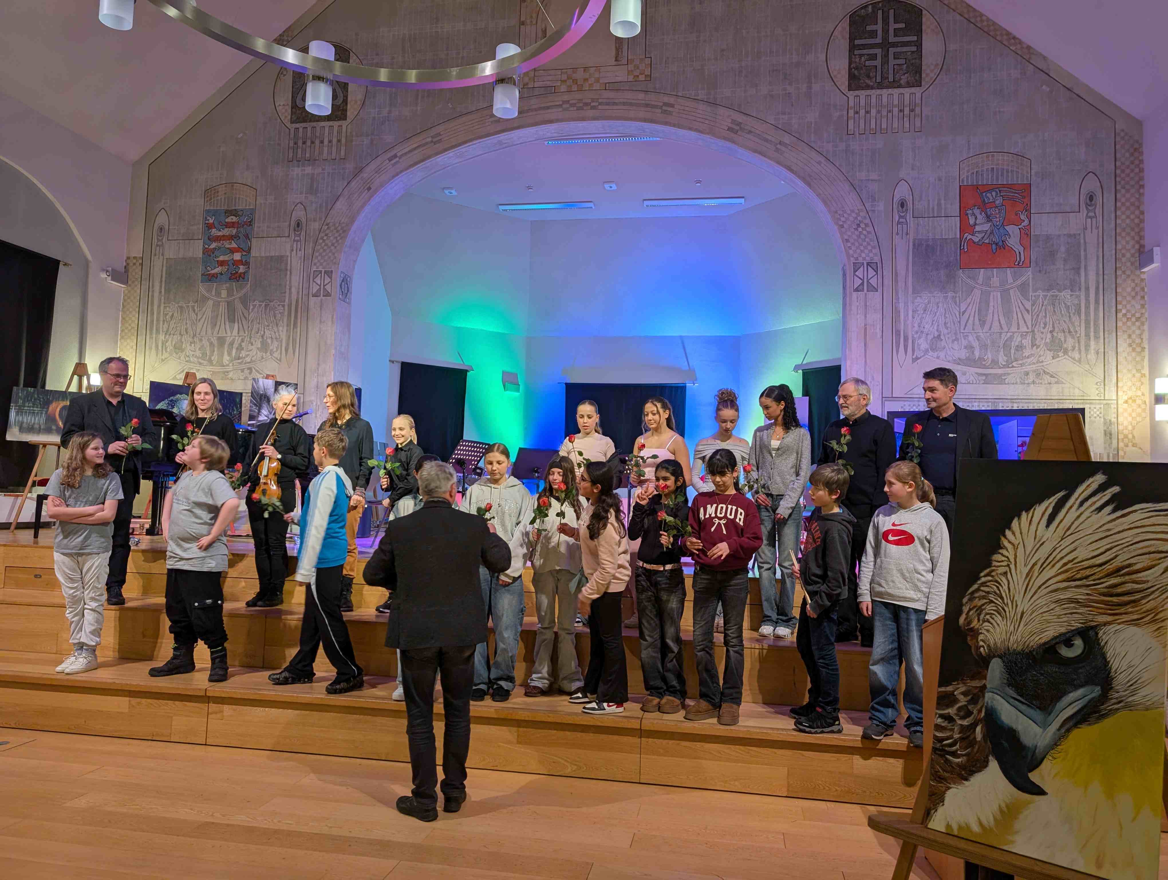 Das Konzerts war darüber hinaus auch als Finissage der Ausstellung „Visuelle Poesie“ mit Arbeiten von Inge Eisman-Nolte und Werner Eisman konzipiert. Zum letzten Mal wurden an diesem Abend die Arbeiten in der Schule gezeigt. Zur Erinnerung an die eindrucksvolle Ausstellung erwarb der Förderverein die Arbeit „Alles im Blick“ für die ständige Ausstellung im Foyer der Schule.