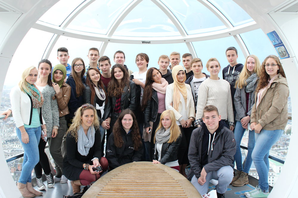 London war sicherlich einer der Höhepunkte unserer Reise. An einem sonnig warmen Samstag gelangten wir mit dem Bus zügig in die Innenstadt und konnten zunächst eine Sightseeing Tour mit dem Bus genießen, der uns sogar über die Tower Bridge fahren konnte (oft ist hier so viel Verkehr, dass man diese Runde mit dem Bus nicht machen kann). Unser Guide an diesem Tag sprach klares, gut verständliches Englisch, so dass die eindrucksvolle Kulisse entlang der Themse auf uns alle umso lebendiger und interessanter wirkte. Später unternahmen wir eine Walking Tour, die uns durch St. James‘ Park zum Buckingham Palace führte. Anschließend gab es die begehrte Freizeit und zum guten Schluss aufregende 40 min. auf dem 135m hohen Riesenrad London Eye, von dem aus wir viele Sehenswürdigkeiten der Stadt noch einmal aus besonderer Perspektive genießen durften.