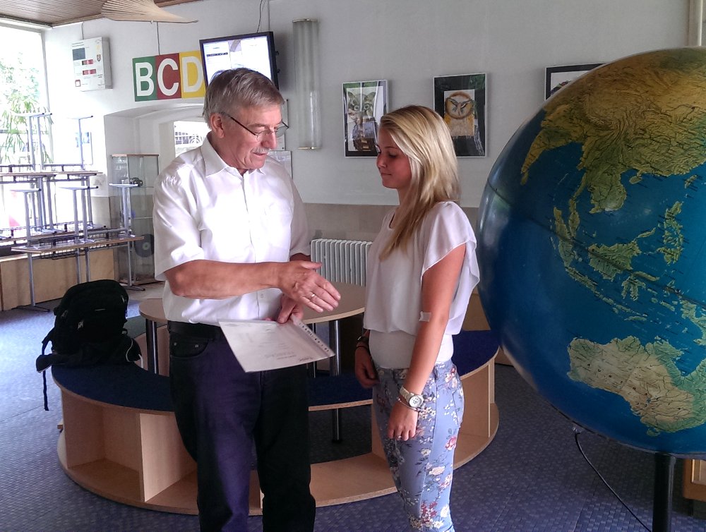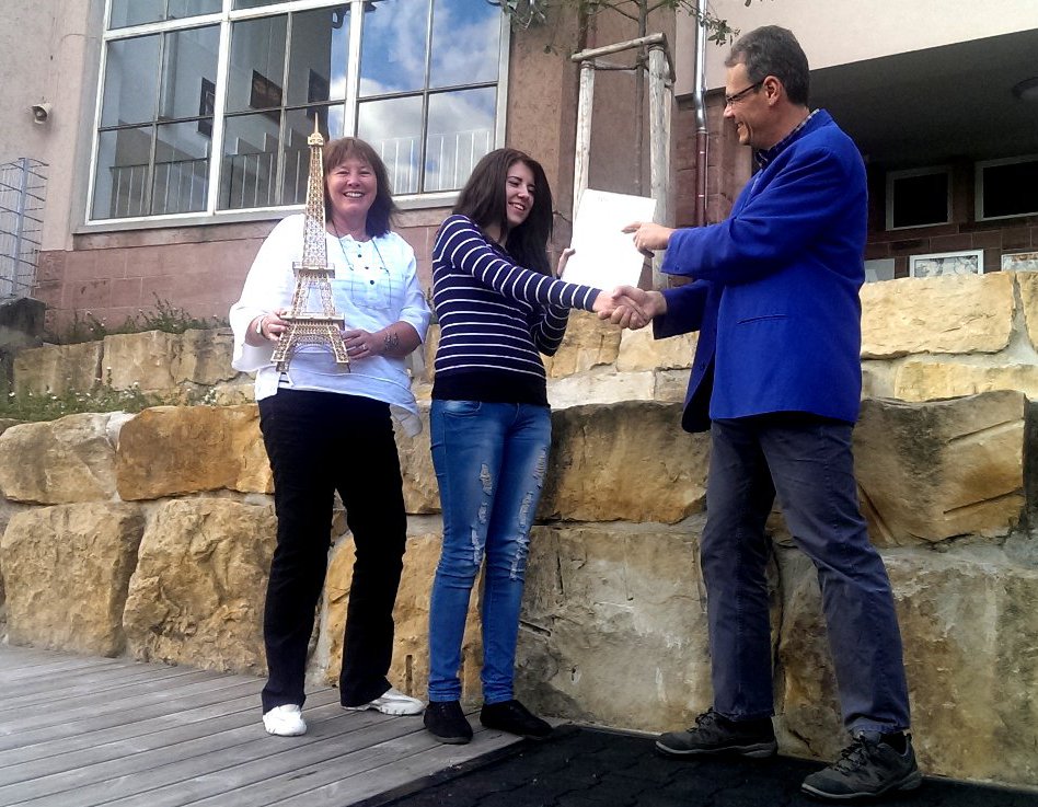 Drei Schülerinnen und Schüler wagten im vergangenen Schuljahr sogar die Zertifikatsprüfung in Französisch. Hier wurde die Vorbereitung im Rahmen des Wahlpflichtkurses Französisch von Frau Bescherer geleistet. Auch hier erhielten unsere SchülerInnen Zertifikate mit guten bis sehr guten Ergebnissen. Sie wurden bereits im neuen Schuljahr feierlich von der Schulleitung überreicht. Nach dieser erfolgreichen Premiere haben sich auch in diesem Schuljahr wieder einige SchülerInnen aus der 10. Klasse zum Vorbereitungskurs angemeldet. Wir wünschen schon jetzt viel Erfolg.