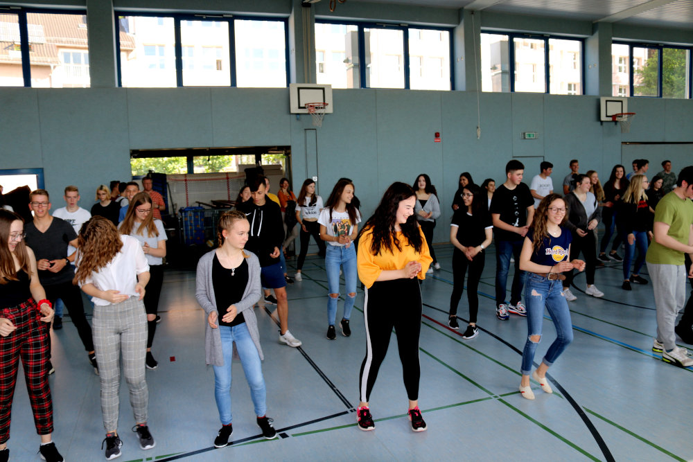 Auf dem Schulhof wurde eine Bühne aufgebaut und für alle Schülerinnen und Schüler der Schule wurde eine Spielshow veranstaltet, in der unter lautem Beifall aller Schüler gegen Schüler, aber vor allem Schüler gegen Lehrer antreten mussten.