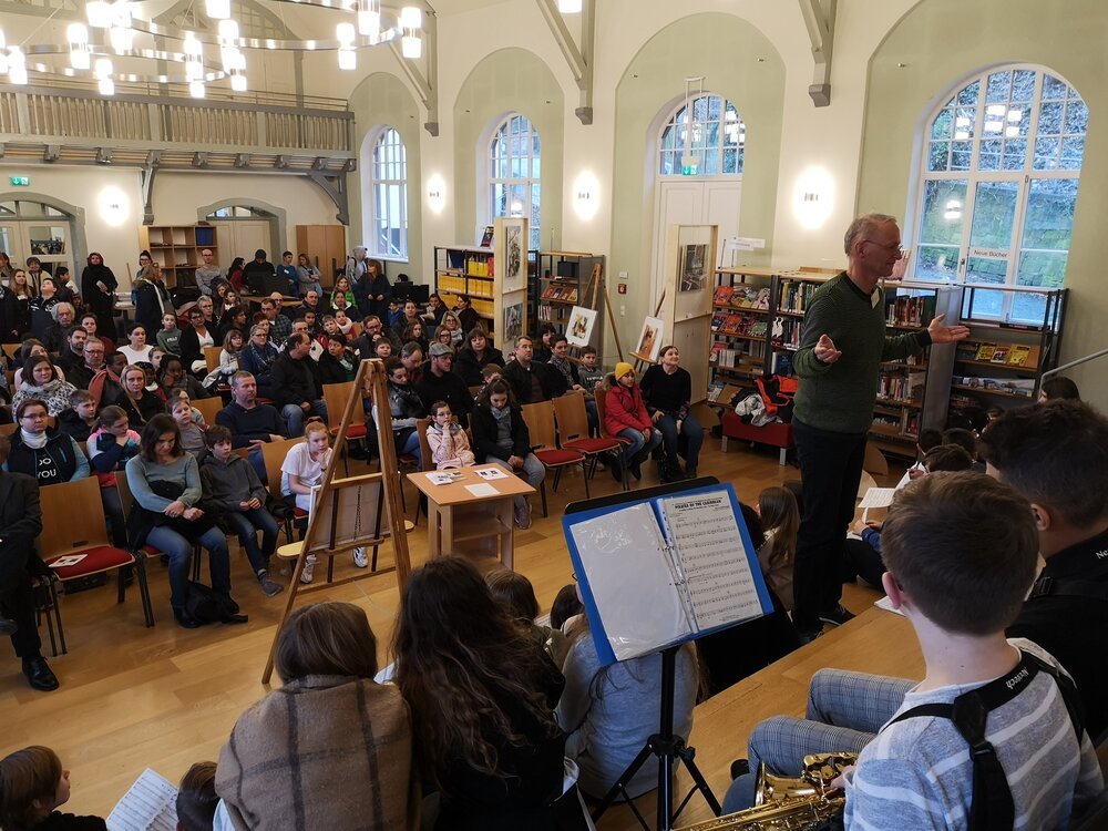 Die Bläsergruppe unter Leitung von Herwig Schmücker, die Klasse 6a mit ihrem im Unterricht von Silas Schlösser entstandenen Klassensong und der Chor unter Leitung von Gerd Schiebl steuerten das Ihre zu einem gelungenen festlichen Rahmen bei.