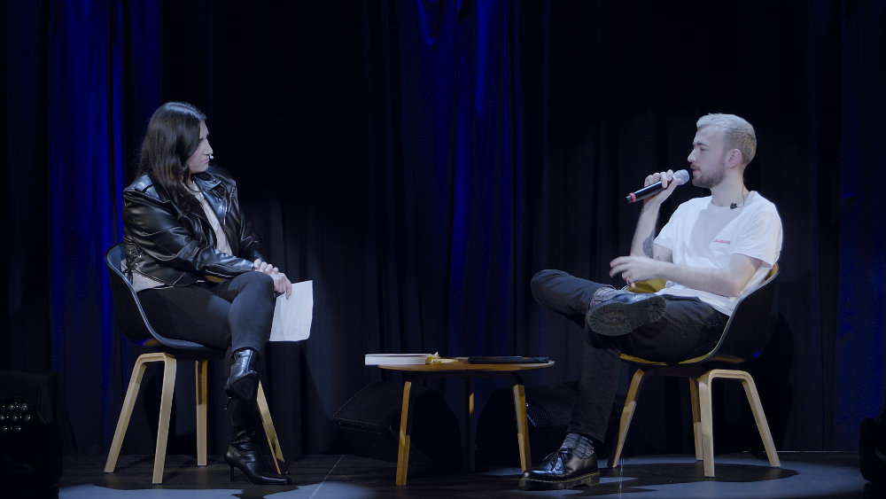 Für die Zehntklässler*innen wurde es etwas konkreter und persönlicher, als Cigdem Toprak den Musiker Sinan interviewte. Im Gespräch berichtete Sinan dann von seiner Kindheit und Schulzeit. Als türkisch-stämmiger Einwanderer habe er ähnliche Erfahrungen gemacht, wie Cigdem Toprak zuvor vorlas. Seiner humorvollen und offenen Art war es zu verdanken, dass die Zuhörer*innen sich direkt ein Bild machen konnten, als Sinan erzählte, wie auch er Vorurteile zu spüren bekam. Allerdings habe er erst mit 14 oder 15 Jahren richtig verstanden, dass es sich teils um rassistische Vorurteile handle. …“ Beispielsweise sei schon sein türkischer Name ein Grund für stereotype Ressentiments gewesen. Herzzerreißend war die Geschichte seiner „ersten großen Liebe“. Seine damals beste Freundin teilte ihm mit, dass sie „so einen wie Sinan“ nicht mit nach Hause bringen könne. Das würde ihr Vater nicht zu lassen.